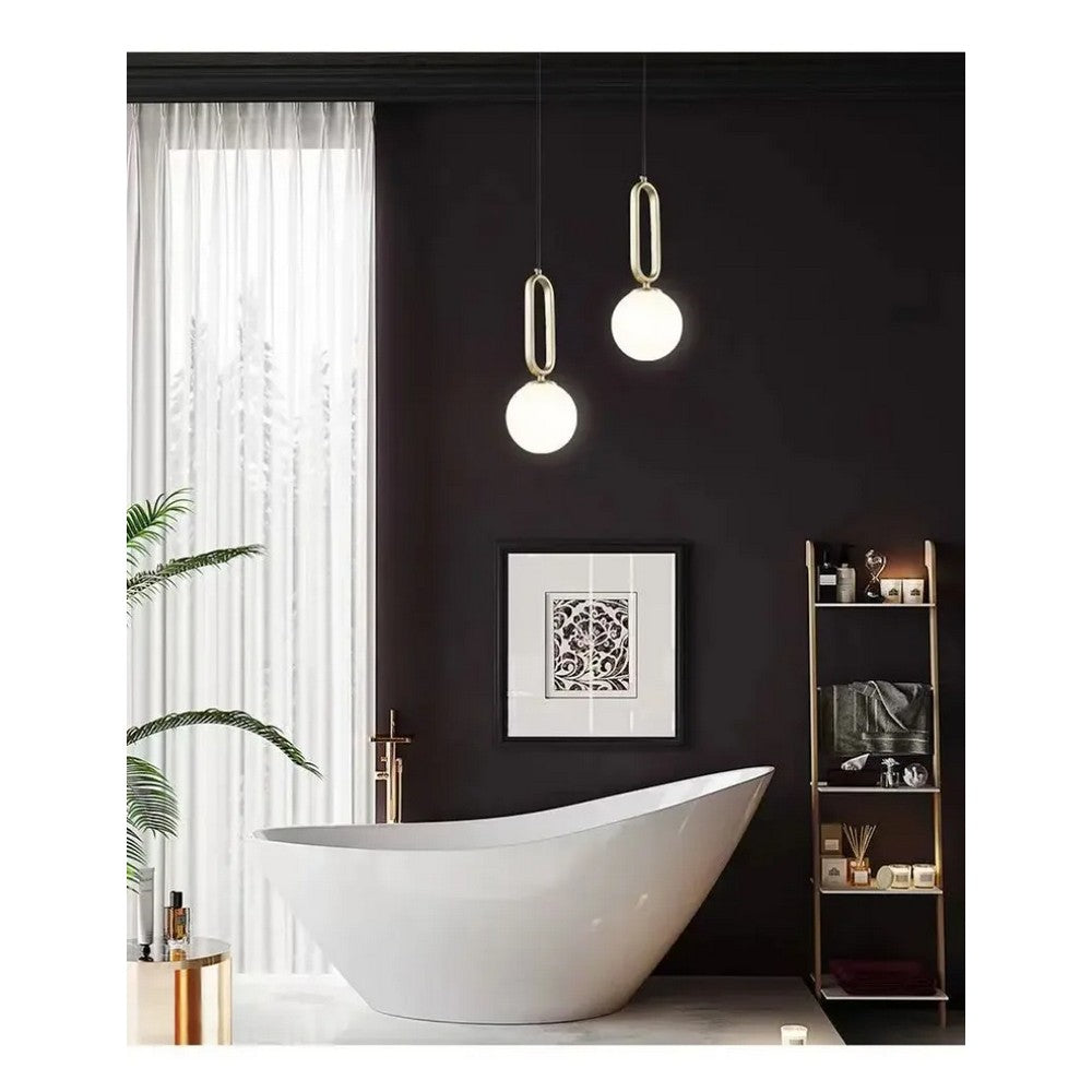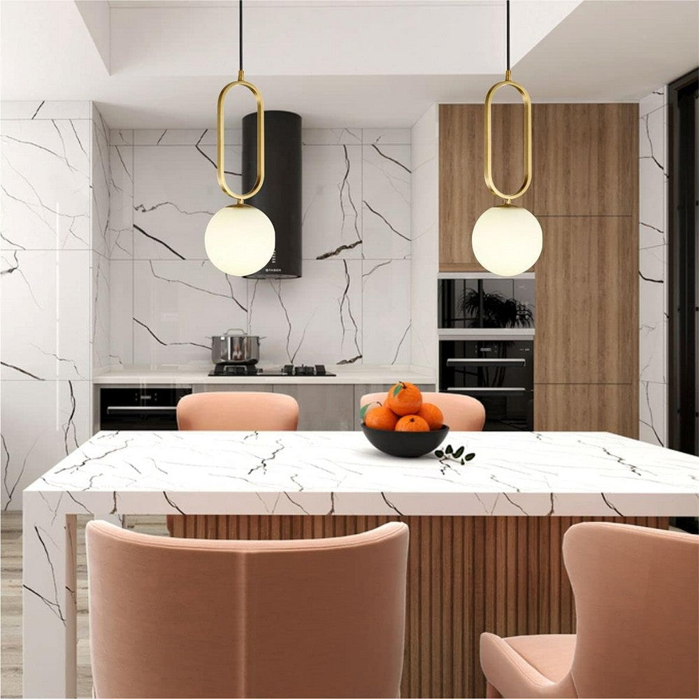 Brass Pendant is a modern yet simple hanging lamp. The ring on top of white globe is built with durable brushed metal to illuminate any space.