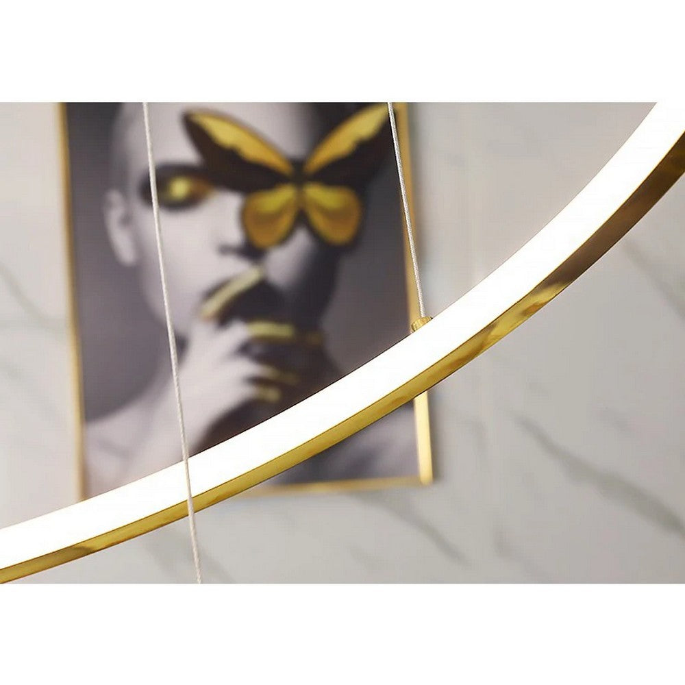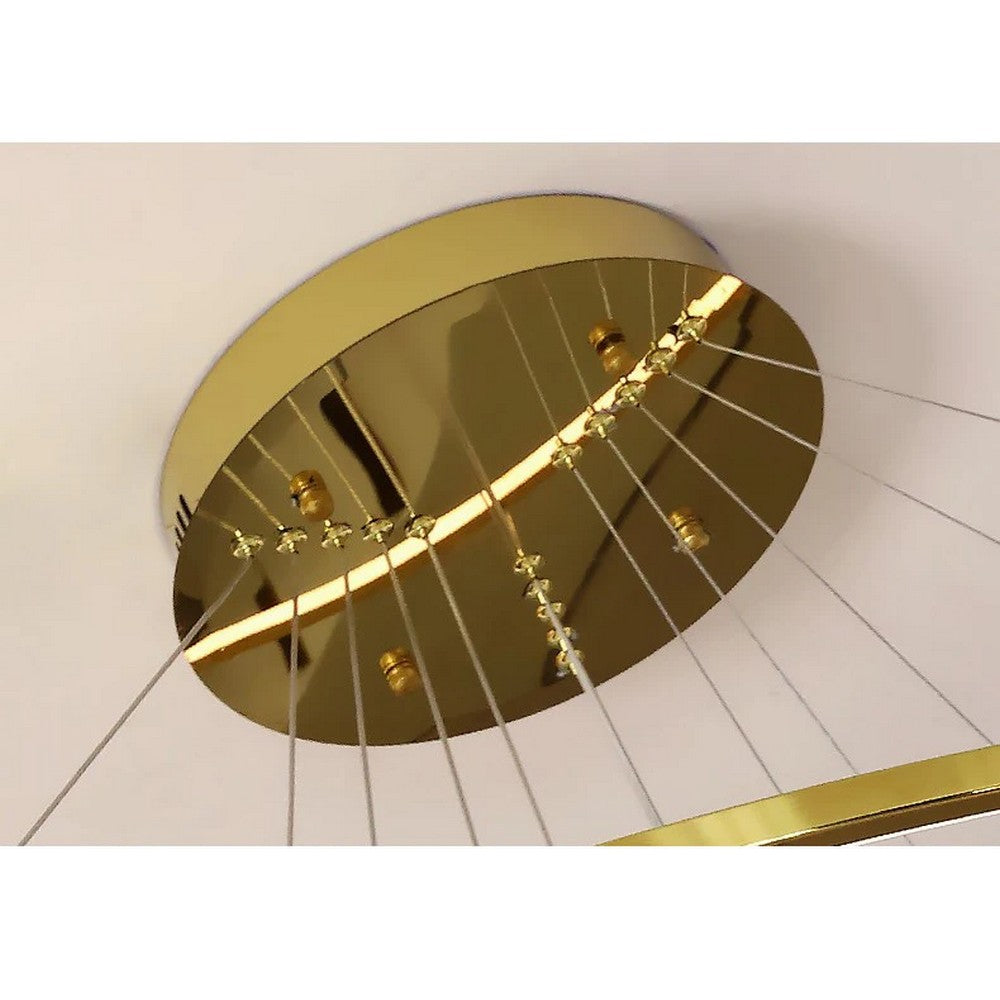 Elevate the look of your house with this Duplex Chandelier. This huge chandelier comes with different sizes of gold rings that can be used as a double heighted pendant in your villa or staircases.