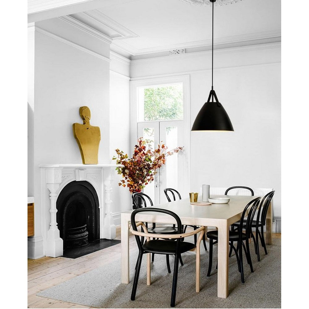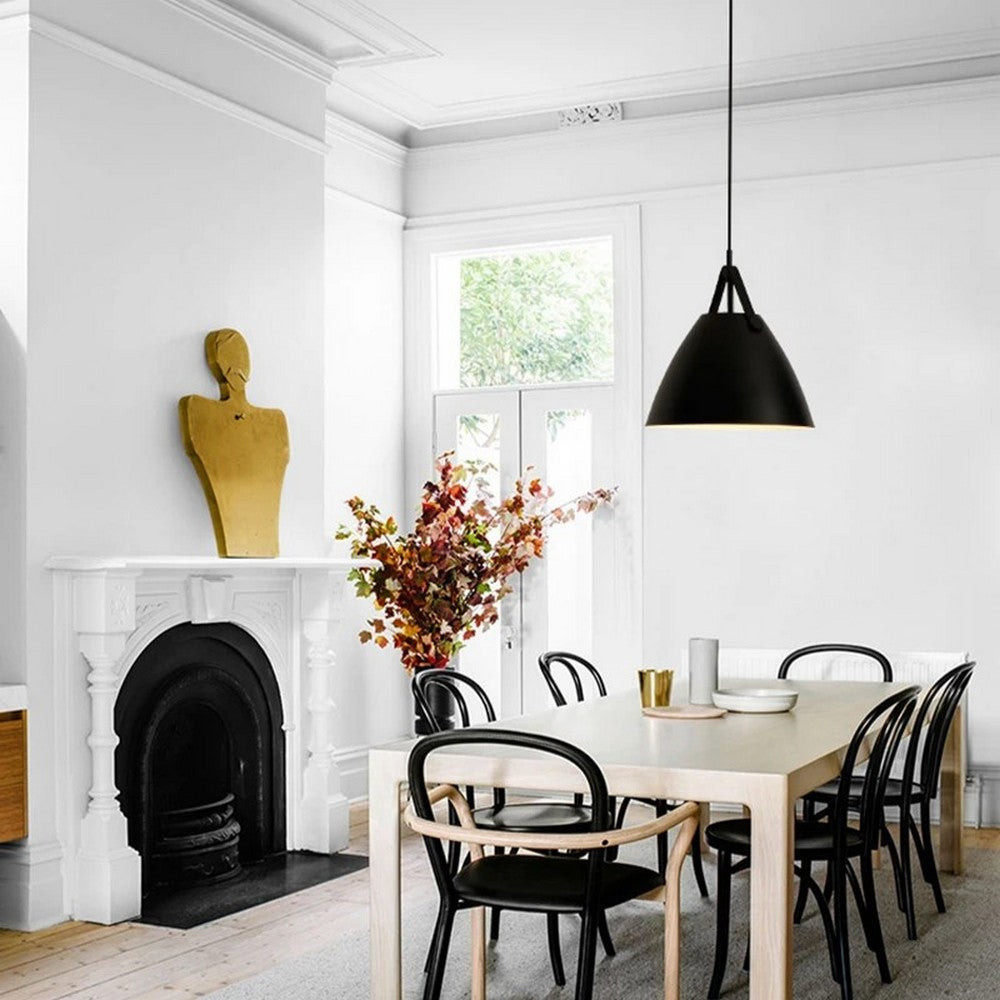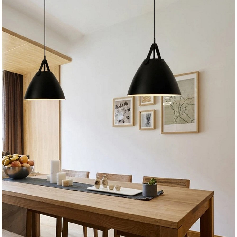 The Leather Strap Pendant is among our most sold products. It was designed keeping the Danish-lamp themes in mind. Due to its simple design, it is pretty easy to contrast it according to your room decor. It has a matt black lampshade, suspended by a leather strap that can be replaced too. This allows you to determine the appearance of your lamp. The lamp, which is plain yet elegant, creates exclusive light accents in the living room, dining room, or wherever you put it.