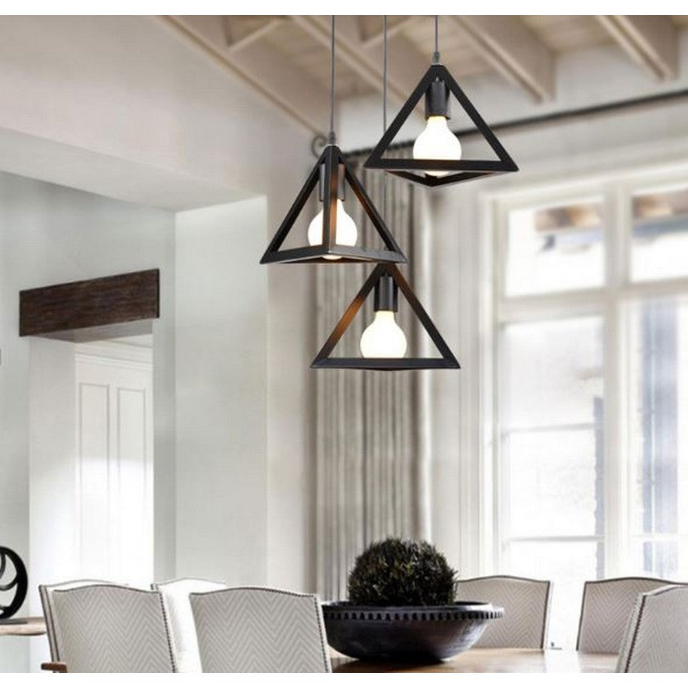 Universal Lights, the one-stop destination for your home decor, brings you in an enchanting Tetra-Triangle Pendant that will make your room, lounge, kitchen, or anywhere you put it, glow like nothing else. We bring you in this enticing Tetra-Triangle Pendant at a reasonable price. The lamp will use a pendant light, which will be held inside a triangle-designed frame in an E27 holder. It is available in matt black color, which makes it truly unparalleled in our collection.